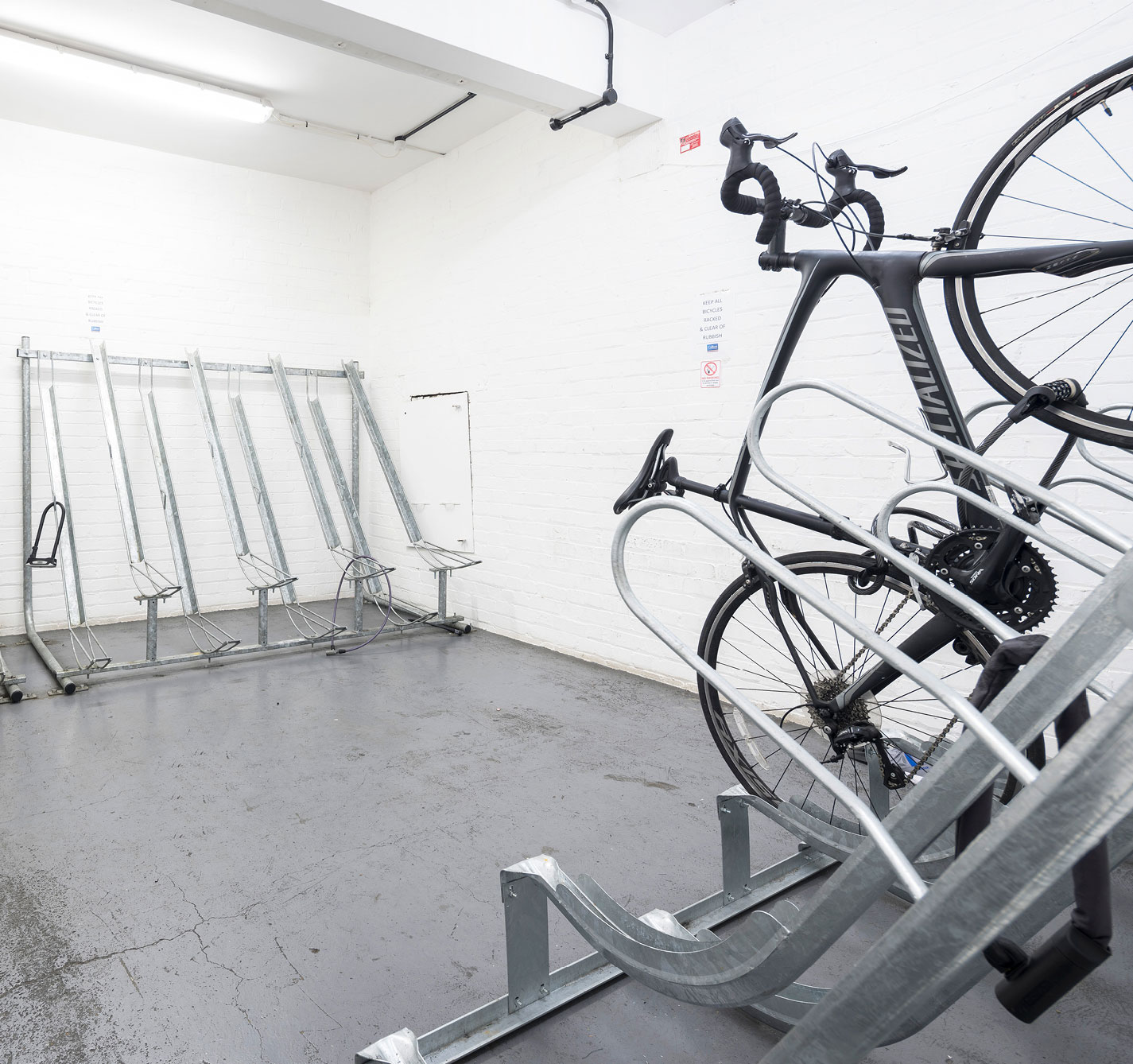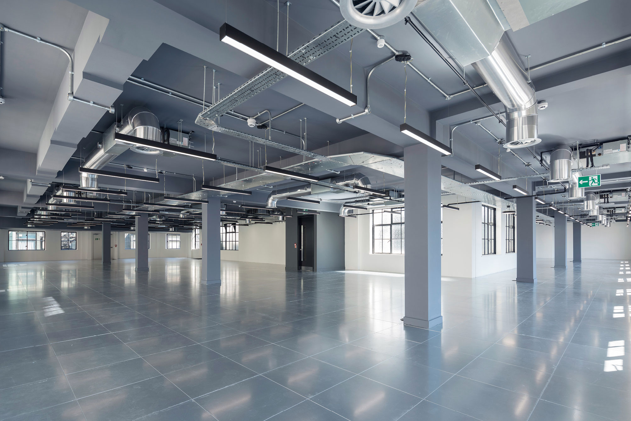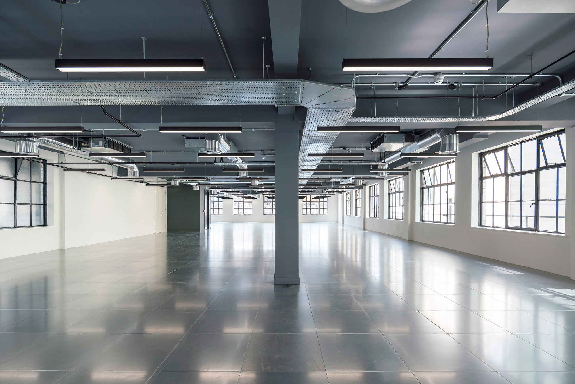 The contemporary specification features exposed services, new metal raised access floors, pendant LG7 lighting, modern WCs, showers, and bike storage.